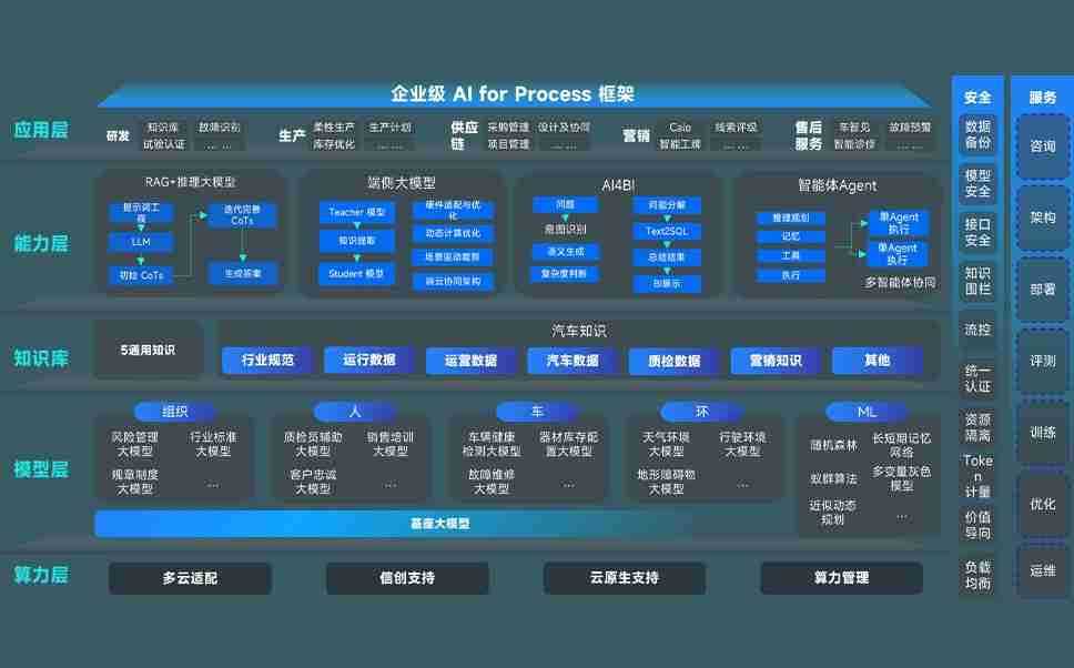 AG尊龙凯时问学智车解决方案是一套基于AI技术的汽车行业智能化系统,,覆盖从底层算力到顶层AI应用的全栈方案。。。方案由算力层、、模型层和应用层组成:算力层,,,方案支持多种一体机配置,,具备云端灵活部署、、、多云适配以及动态优化计算资源的能力;模型层,,,AG尊龙凯时问学平台版提供了企业级AI应用一站式构建与管理平台,,,支持基于后训练强化技术的汽车企业专属模型的训练、、、、评测和运营;应用层,,,AG尊龙凯时问学DeepSeek版提供包括超级员工、、智能招采、、智能营销、、、智能客服、、、AI for BI等一系列解决方案,,,可助力汽车行业实现数字化转型,,让管理更智能、、响应更敏捷。。。。